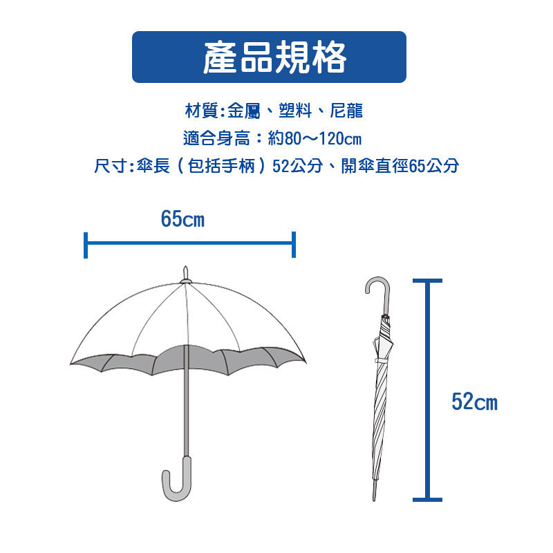 ※ 尺寸:傘長(包括手柄)52公分、開傘直徑65公分