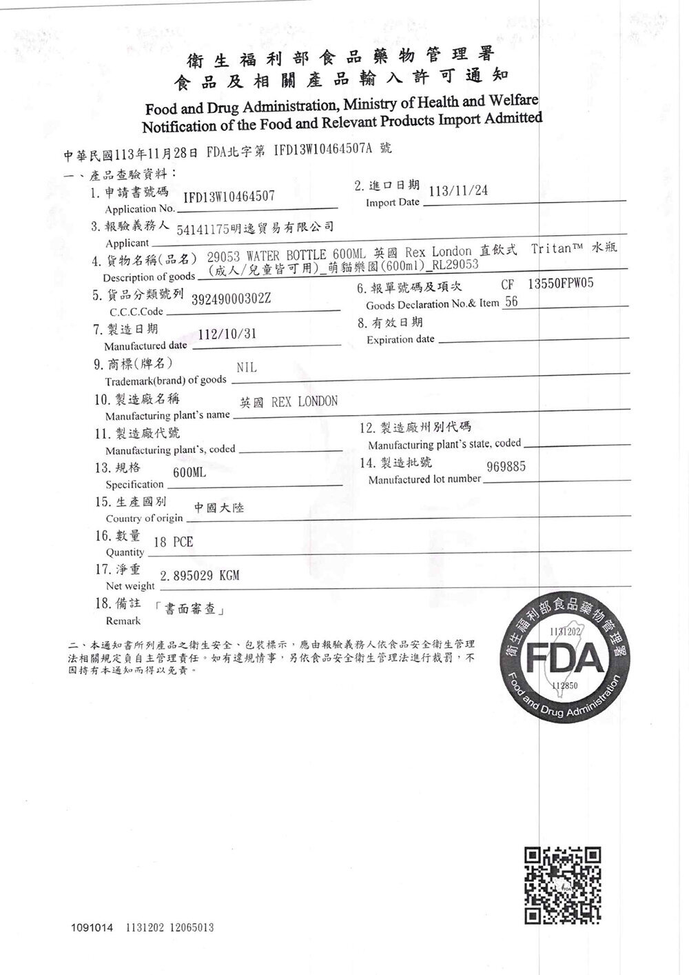 ★ 通過台灣衛生福利部食品藥物管理署輸入許可