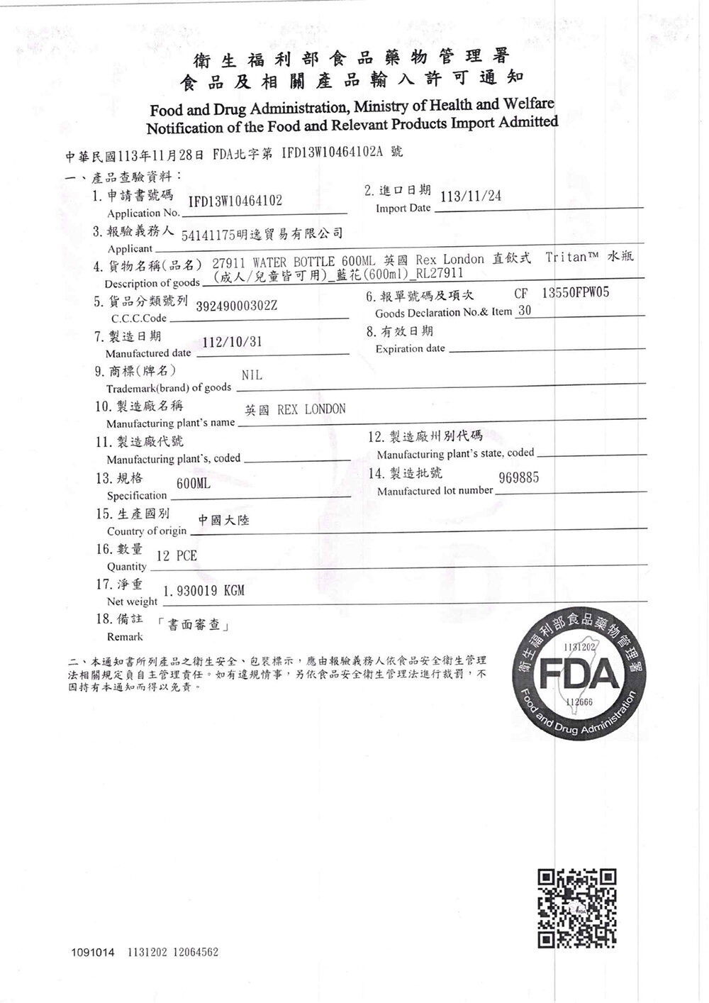 ★ 通過台灣衛生福利部食品藥物管理署輸入許可