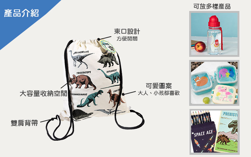 英國 Rex London 精品 - 英國 Rex London 純棉後背包_恐龍世界_RL28049