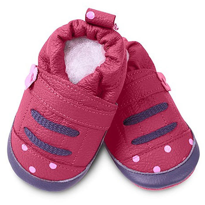 英國 shooshoos 安全無毒真皮手工鞋/學步鞋/嬰兒鞋/室內鞋/室內保暖鞋_桃紅點點運動型_SRY40