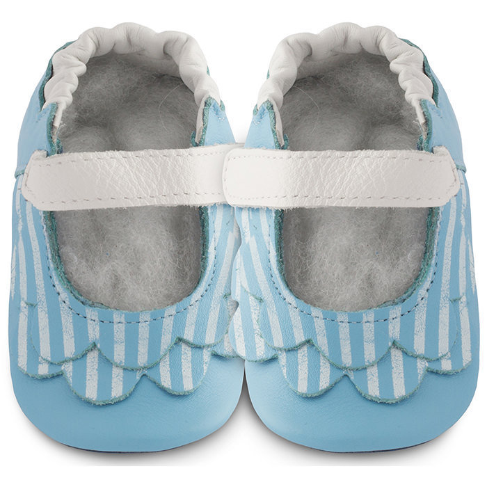 英國 shooshoos 安全無毒真皮手工鞋/學步鞋/嬰兒鞋_湛藍荷葉條紋(公司貨)