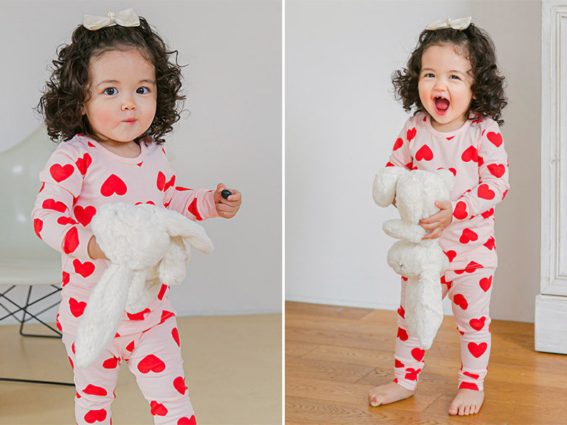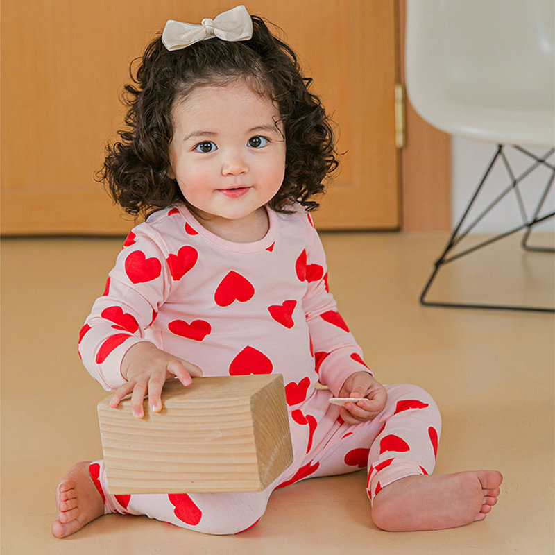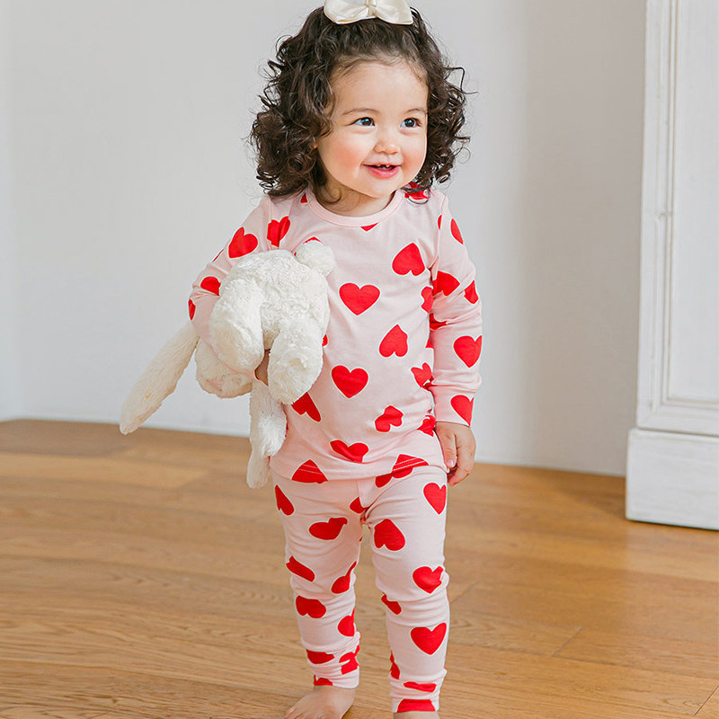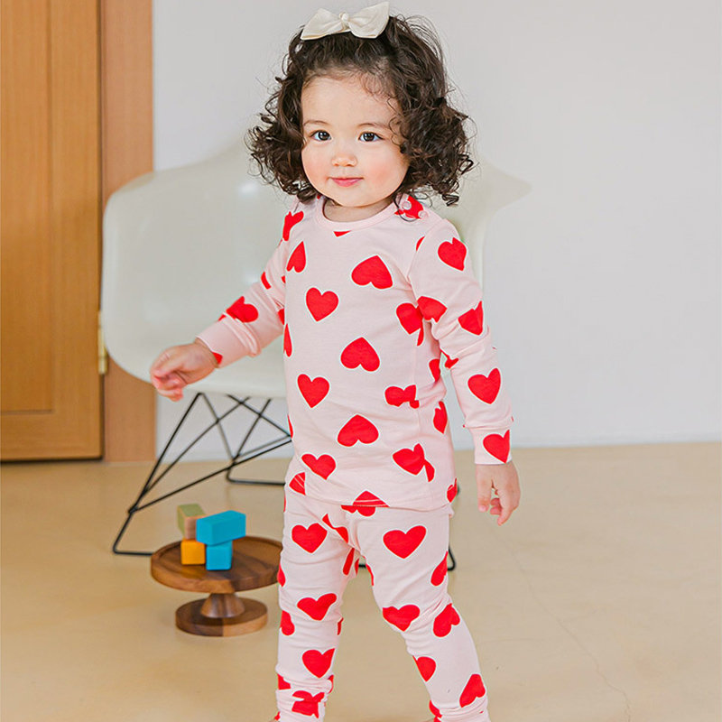 韓國熱銷童裝 - 韓國原廠進口 Cordi- I 無螢光劑、100%純棉、30支紗幼童/小童家居服/睡衣_粉色愛心_CI006
