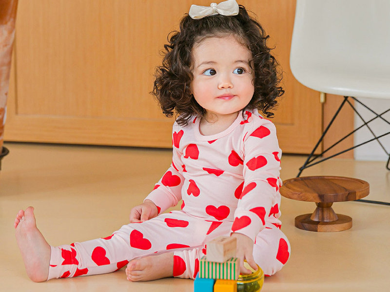 韓國原廠進口 Cordi- I 無螢光劑、100%純棉、30支紗幼童/小童家居服/睡衣_粉色愛心_CI006
