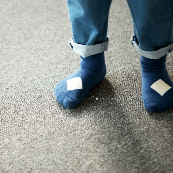 韓國 Mini Dressing 嬰幼兒/小童短襪_藍色菱形 (MDS023)