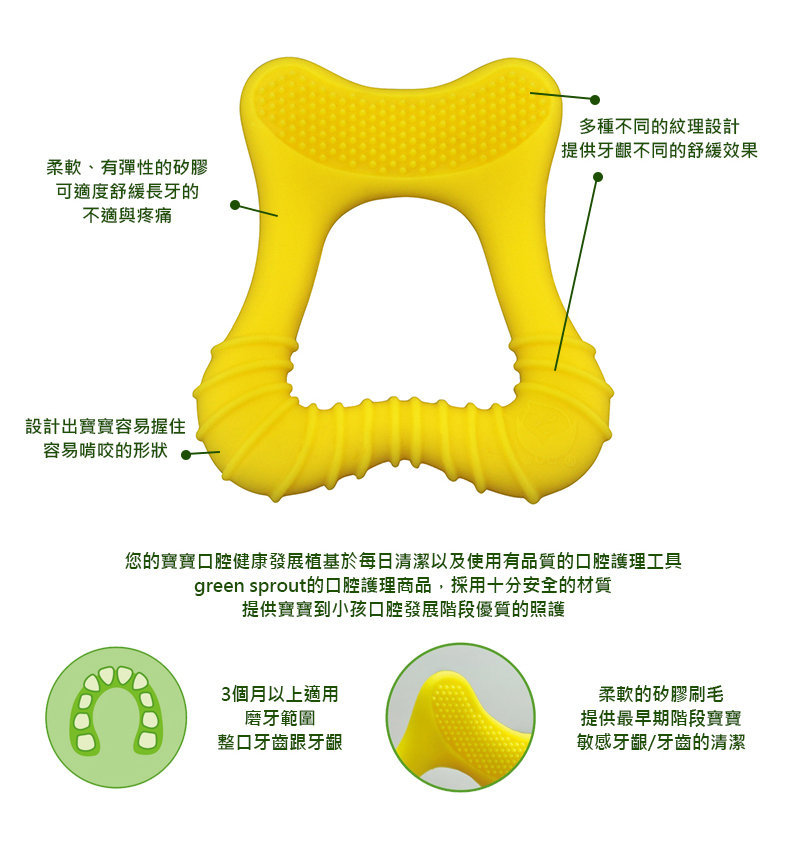 美國 green sprouts 小綠芽 食品安全等級矽膠固齒器/潔牙固齒器單入組_亮黃_GS385301