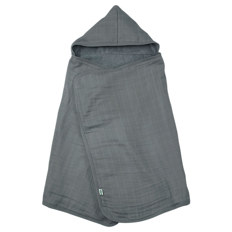 美國 green sprouts 小綠芽 兩層式超吸水有機棉細紗布連帽式浴巾/包巾/小被子_灰_GS336101G