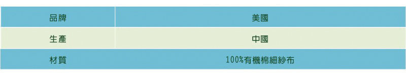 ※ 100%有機棉細紗布、不含甲醛、偶氮染料等刺激性化學物質。