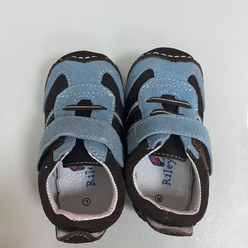 【福利品】美國 Rileyroos 手工真皮無毒學步鞋/童鞋/寶寶鞋/嬰兒鞋_ 水藍咖啡運動型(R-3)