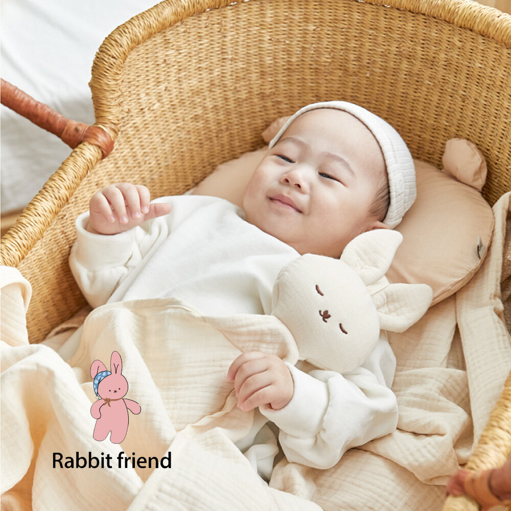 [正韓Hello HiZoo] 多功能純棉三層紗安撫毯/浴巾/紗布巾/咬咬巾/口水巾/安撫巾_兔兔_HH070