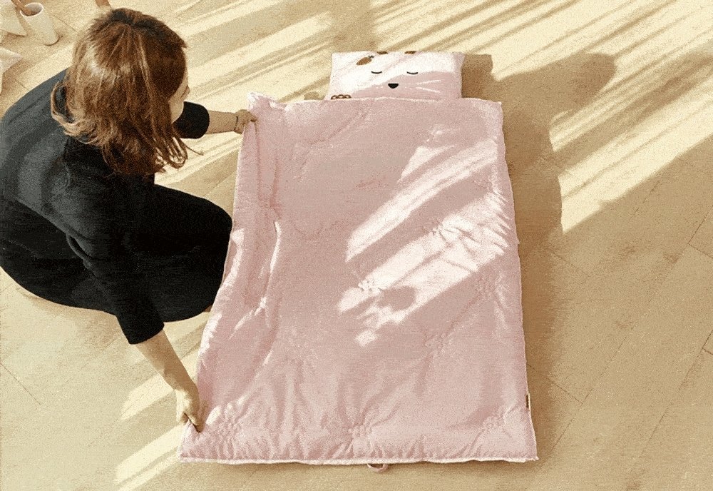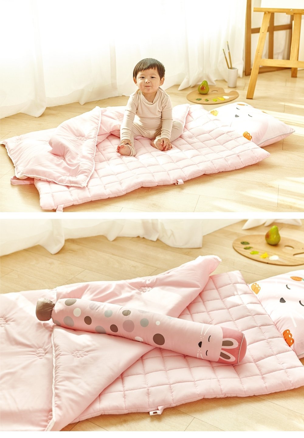 [正韓Hello HiZoo] 純手工製莫代爾防蟎抗菌兒童睡袋(枕頭+睡墊+被子)-粉紅兔HH050