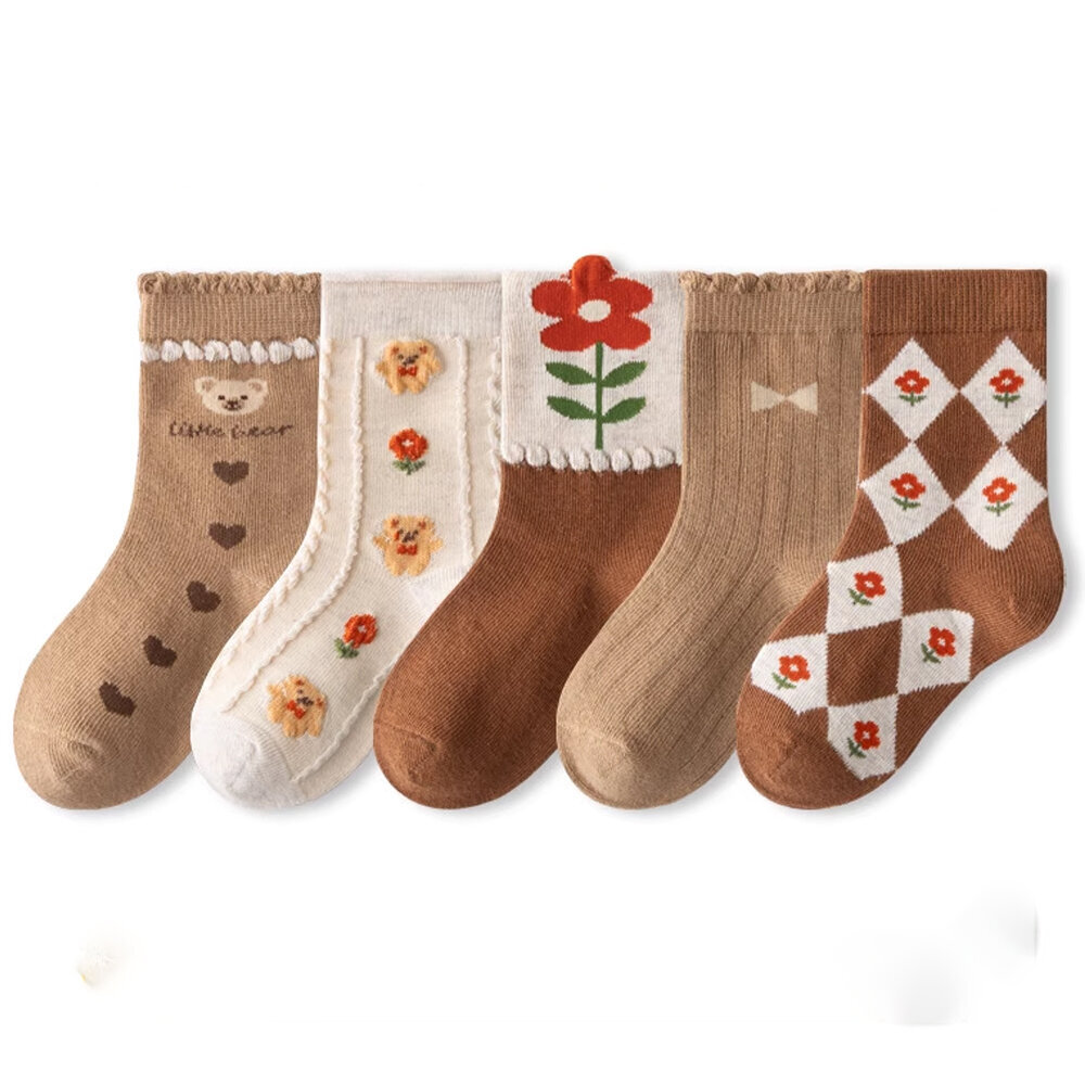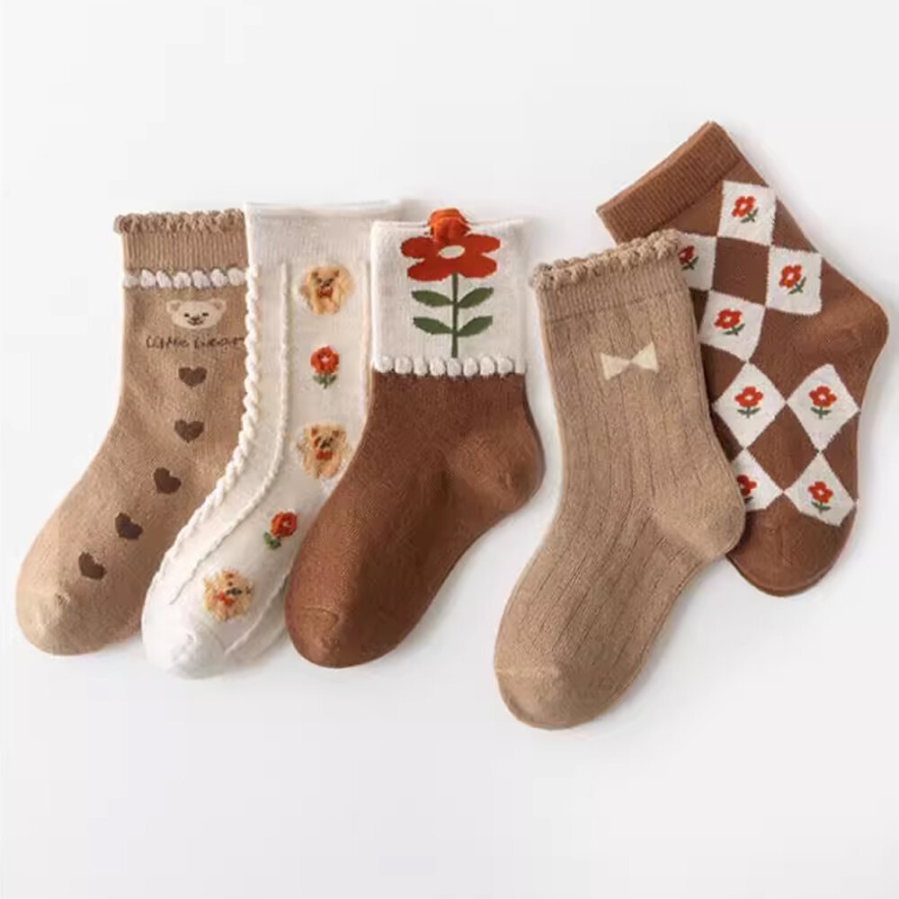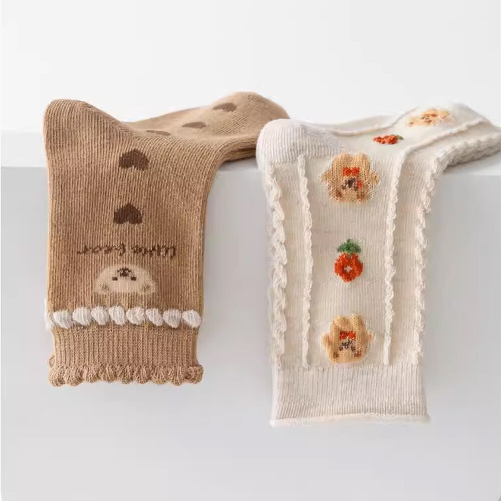 【腳ㄚ子】幼/兒童棉質中筒襪_小熊餅乾_ilbG012