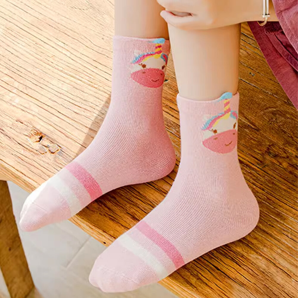【腳ㄚ子】幼/兒童棉質中筒襪_彩虹獨角獸_ilbG007