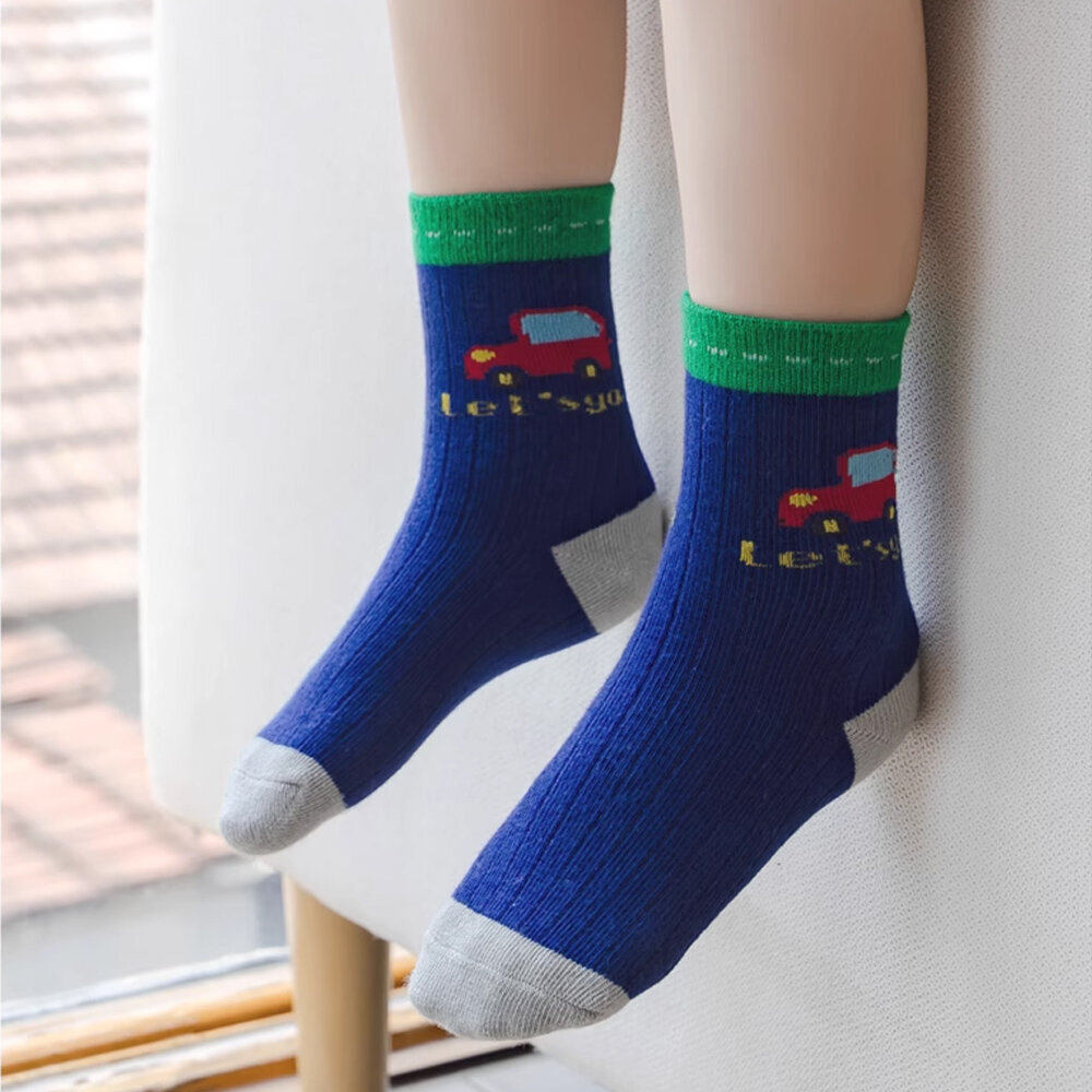 【腳ㄚ子】幼/兒童棉質中筒襪_汽車世界_ilbB007