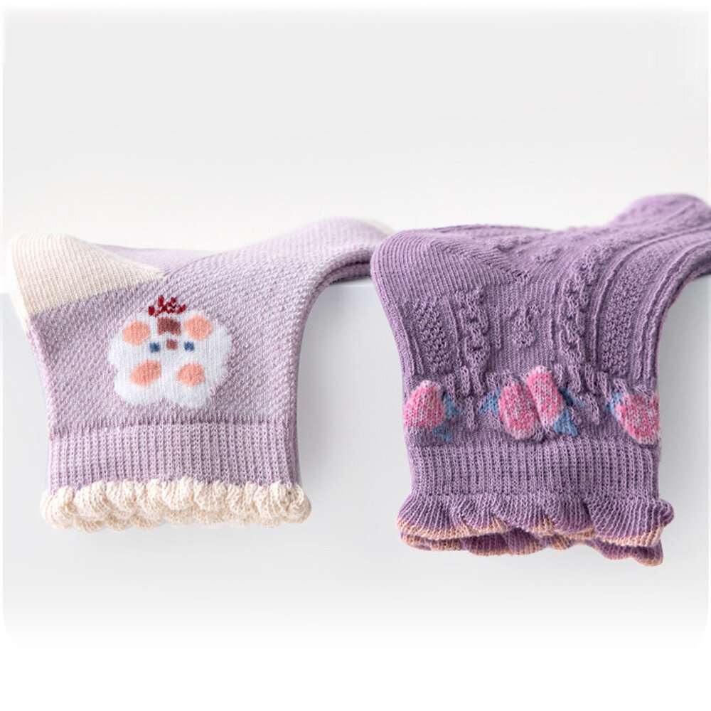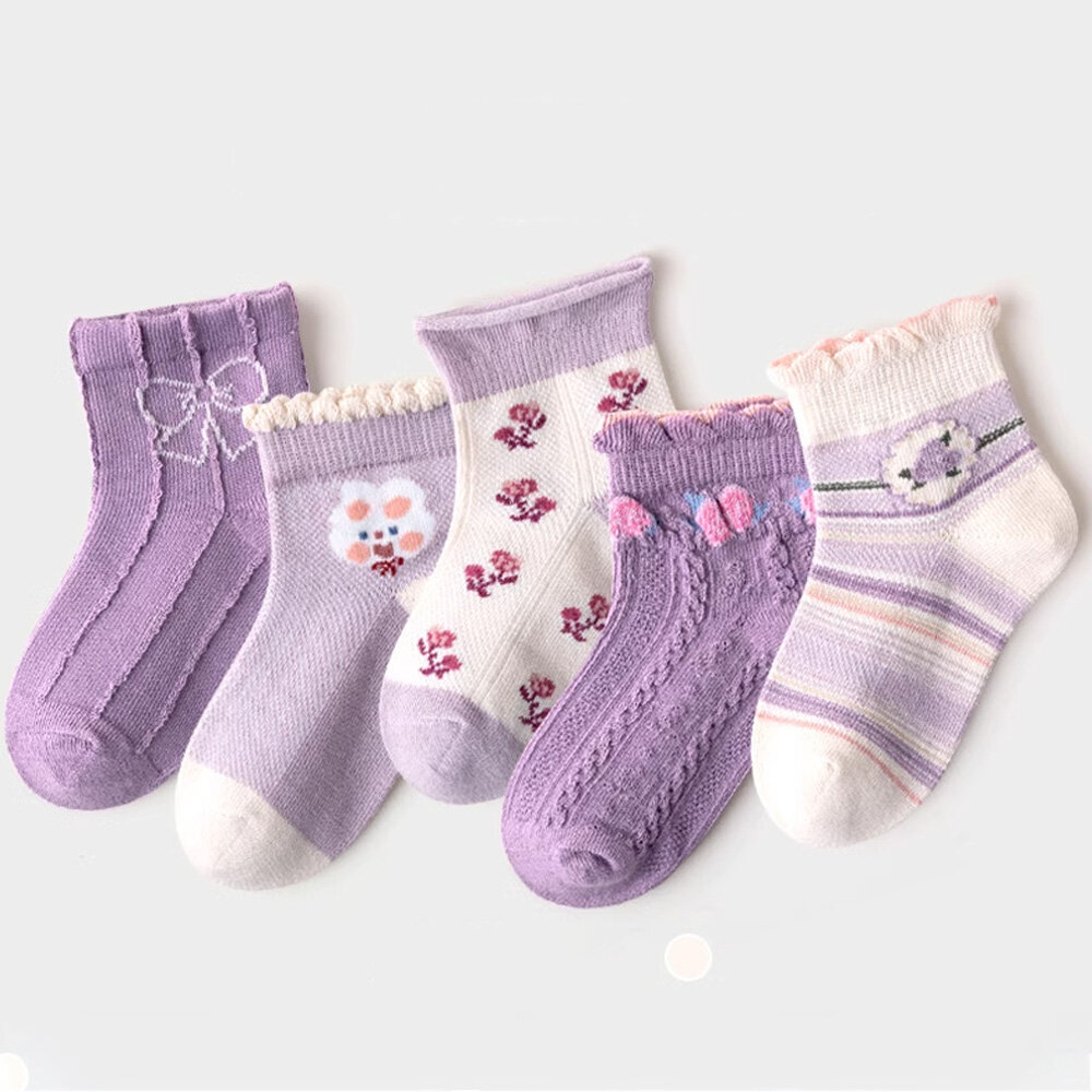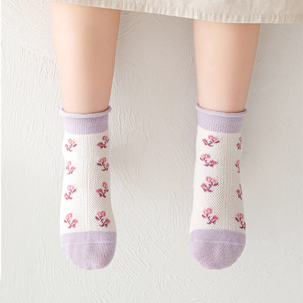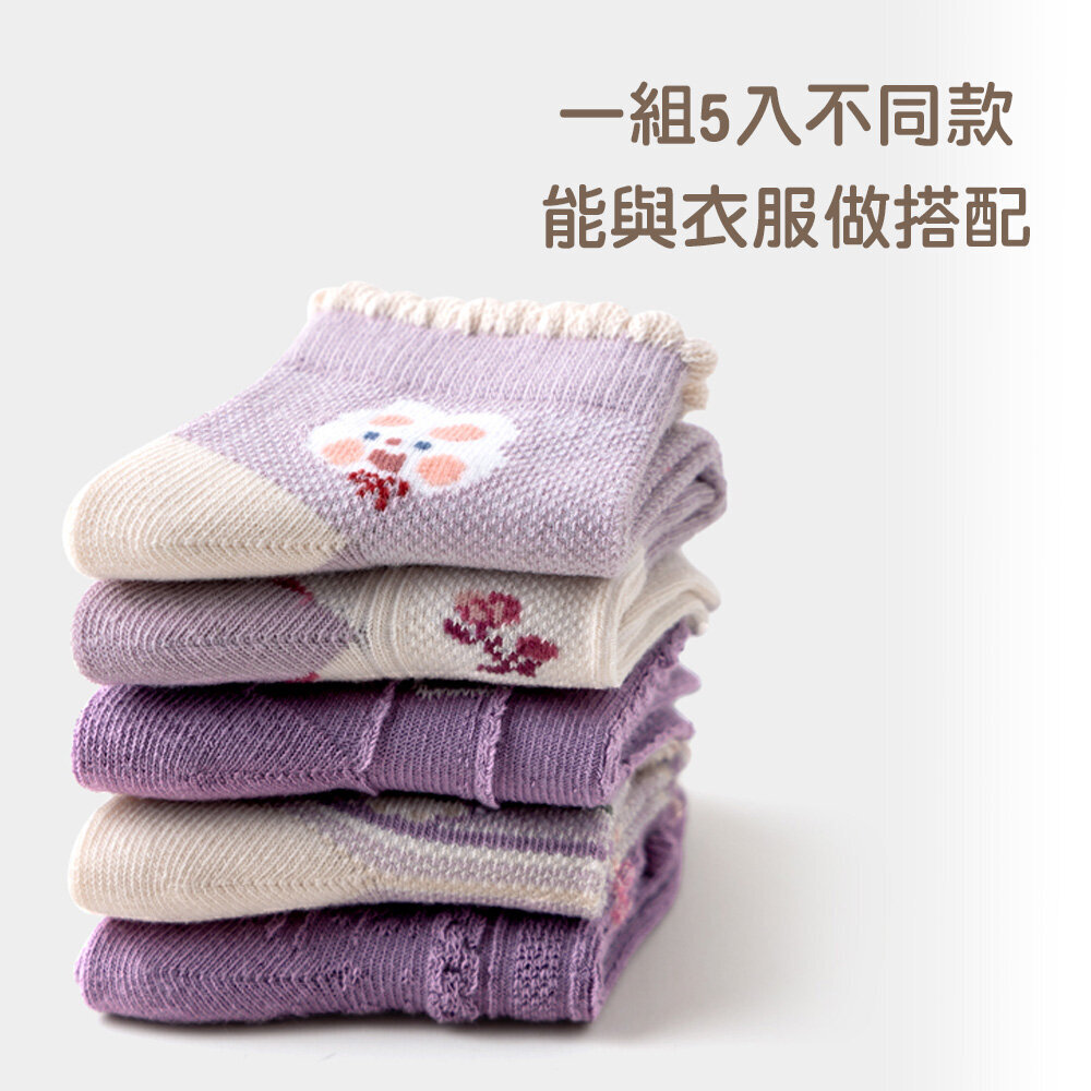 【腳ㄚ子】幼/兒童棉質中筒襪_溫柔紫花_ilbG004