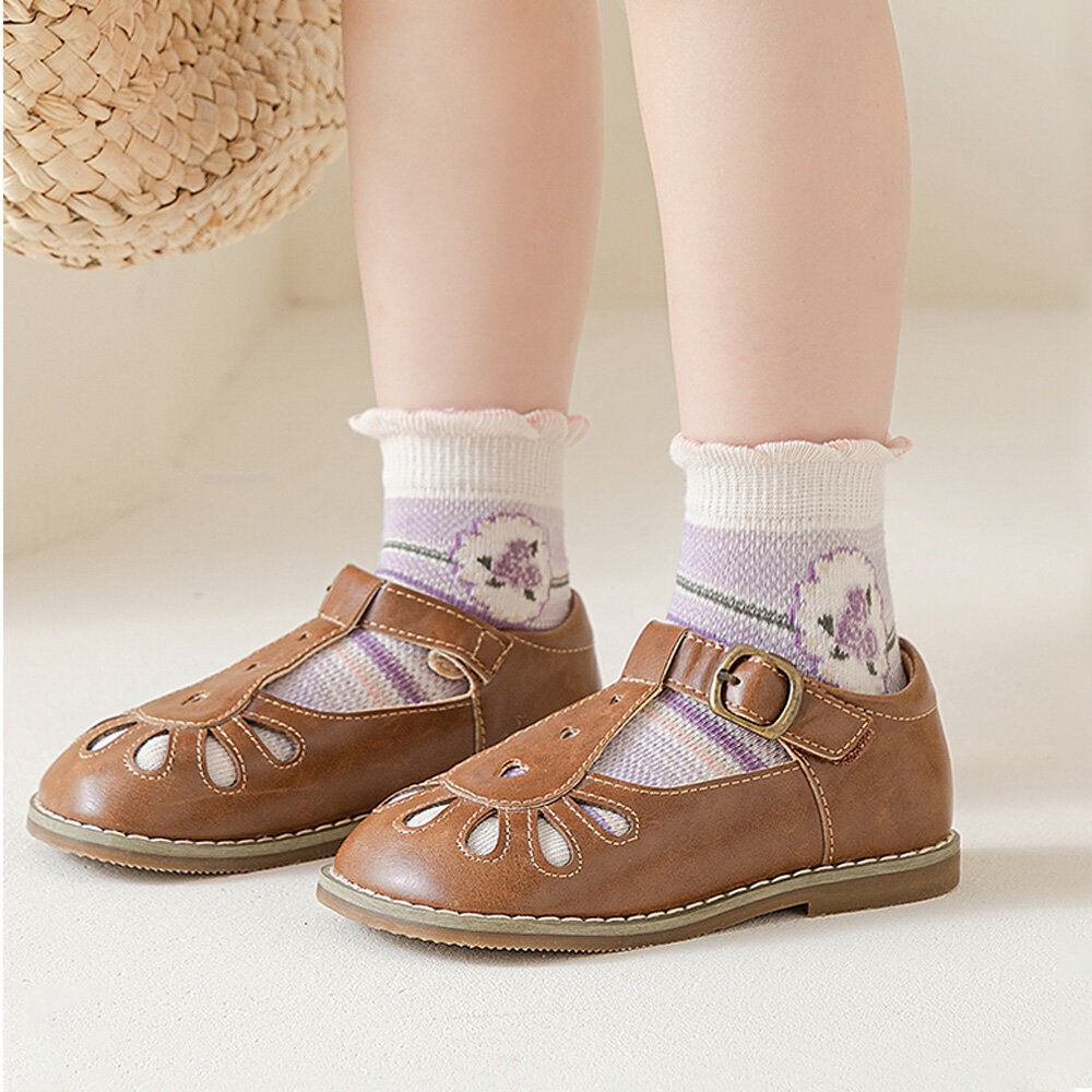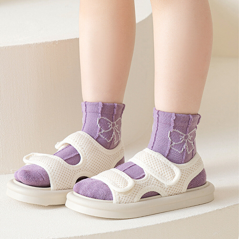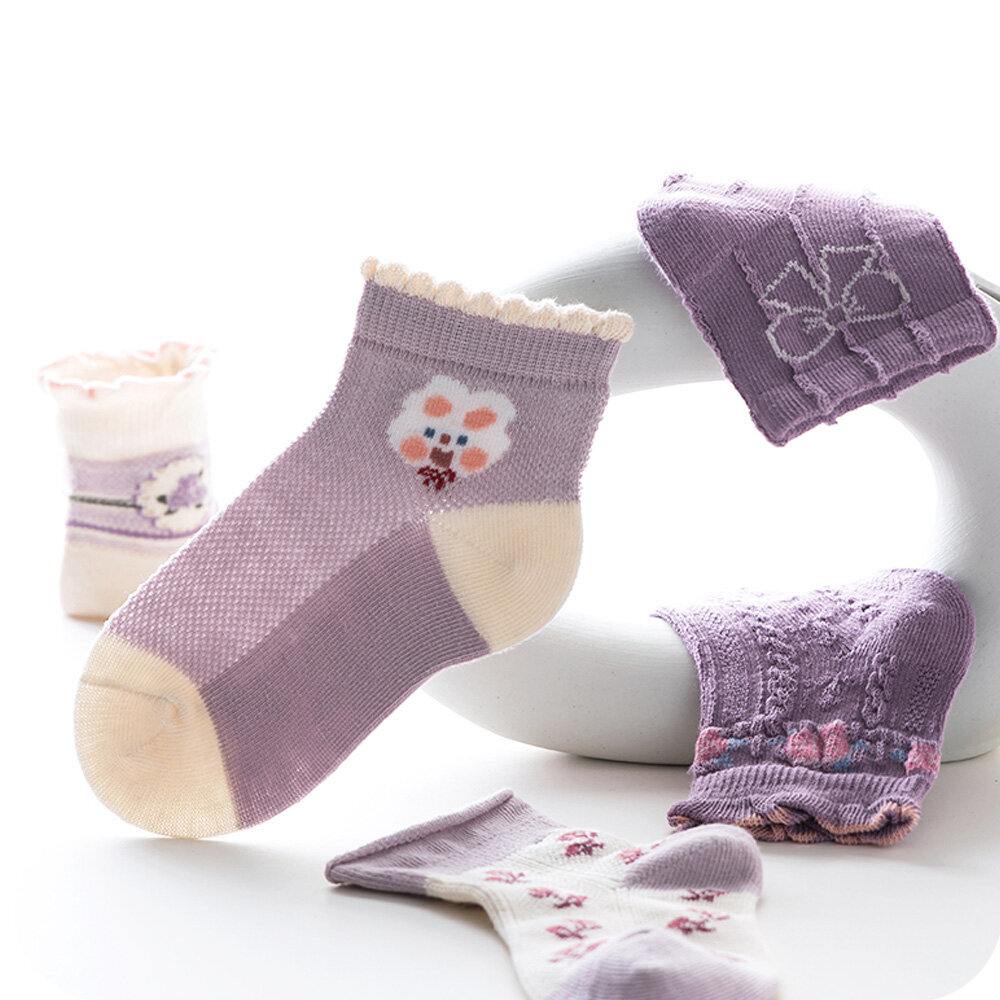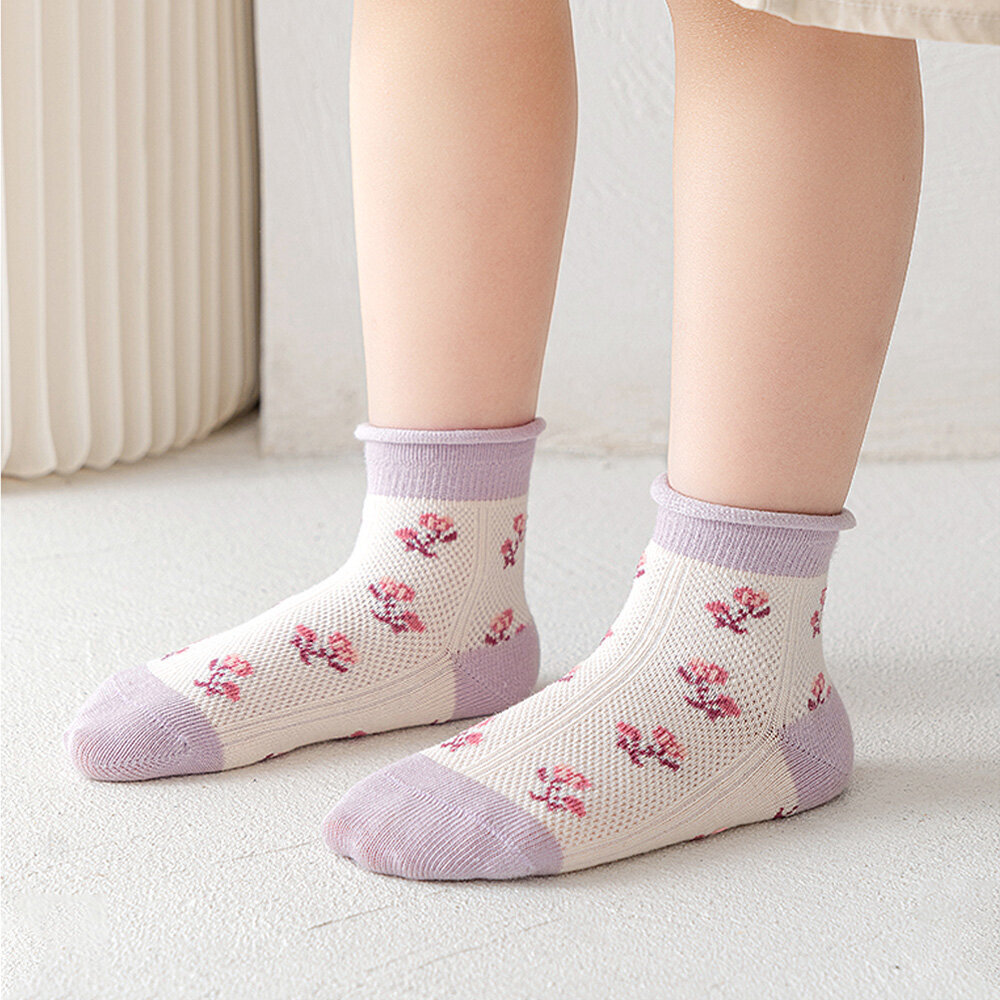 【腳ㄚ子】幼/兒童棉質中筒襪_溫柔紫花_ilbG004