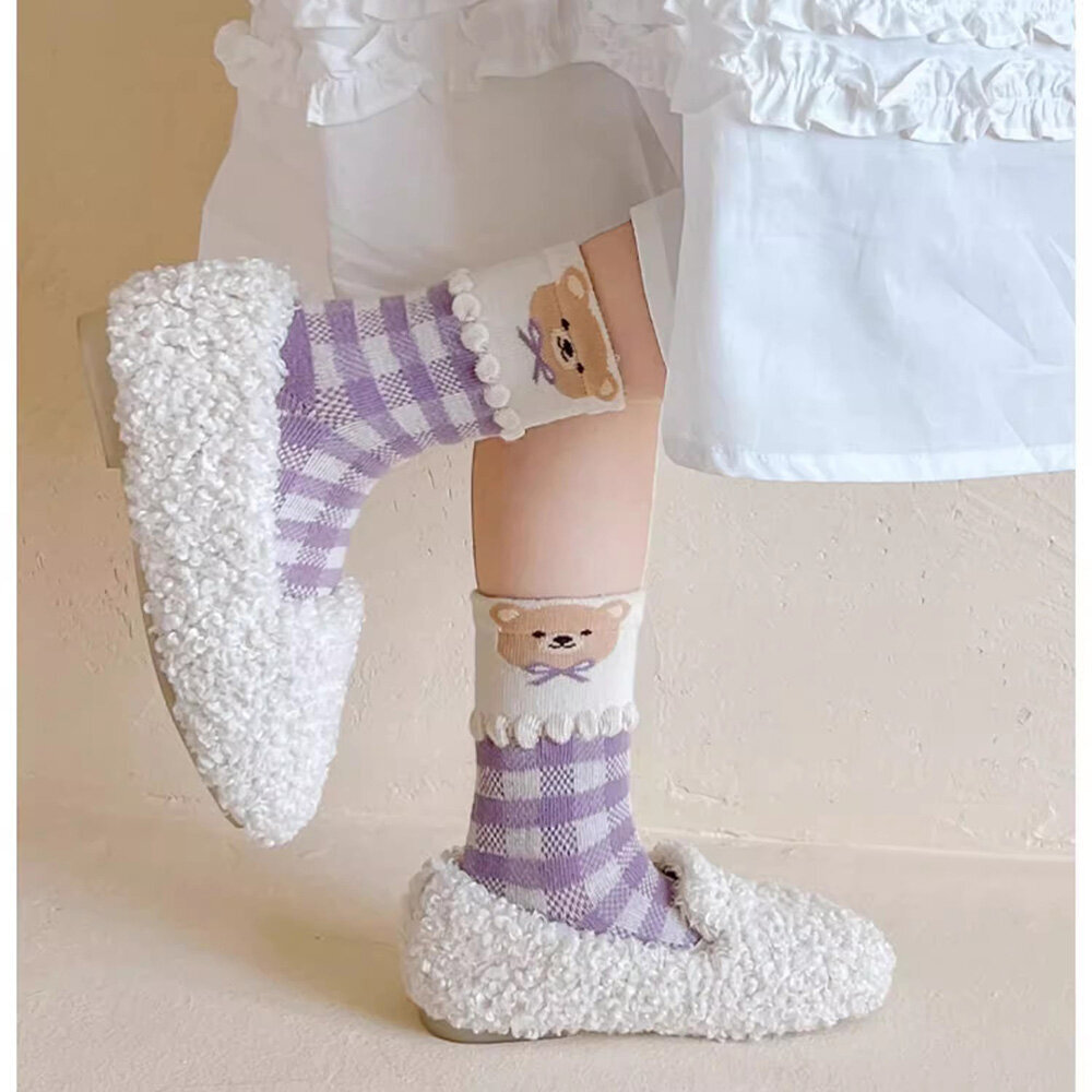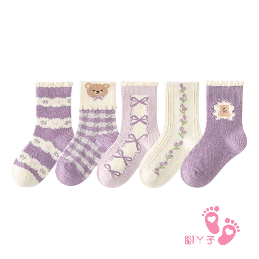 【腳ㄚ子】幼/兒童棉質中筒襪_紫色花園_ilbG022
