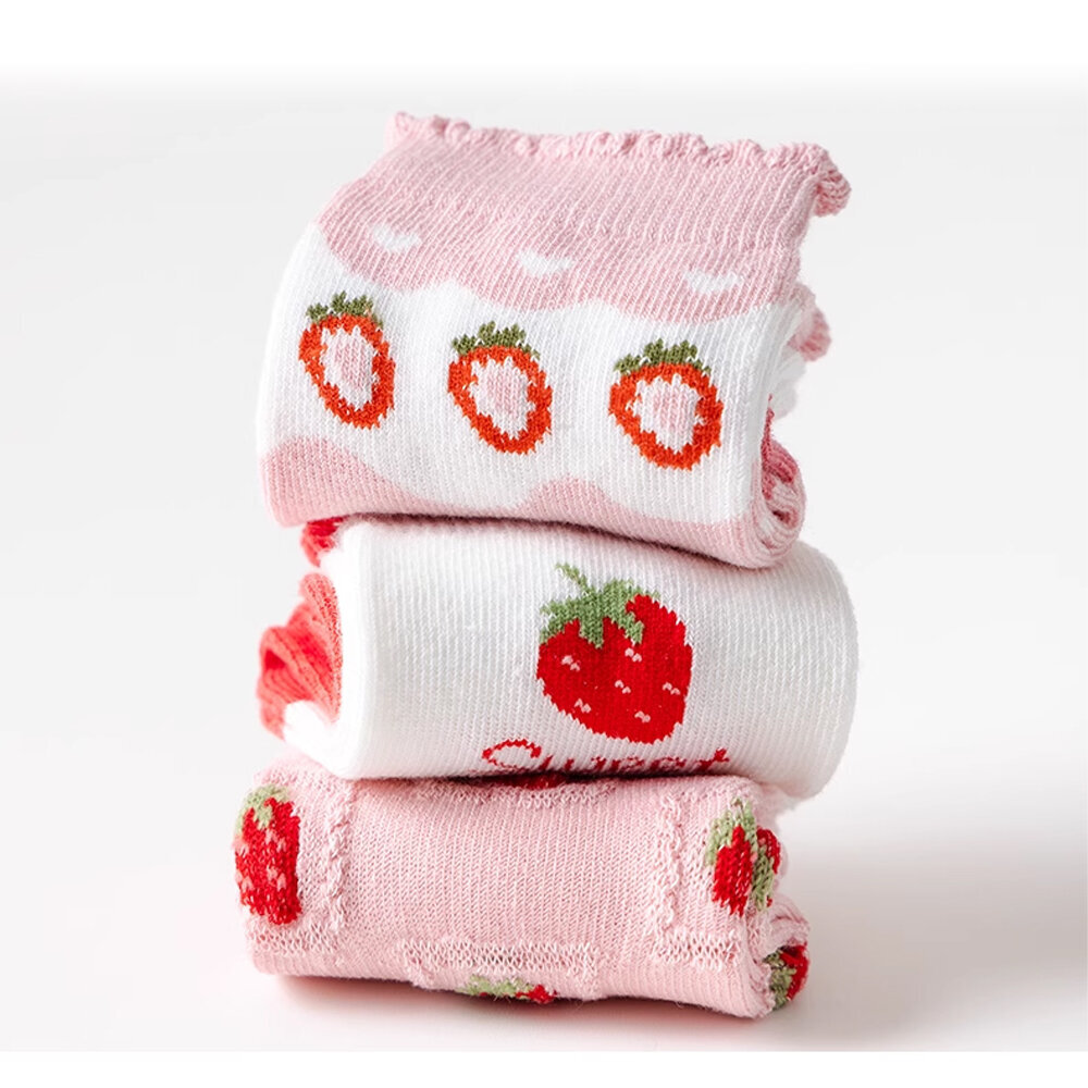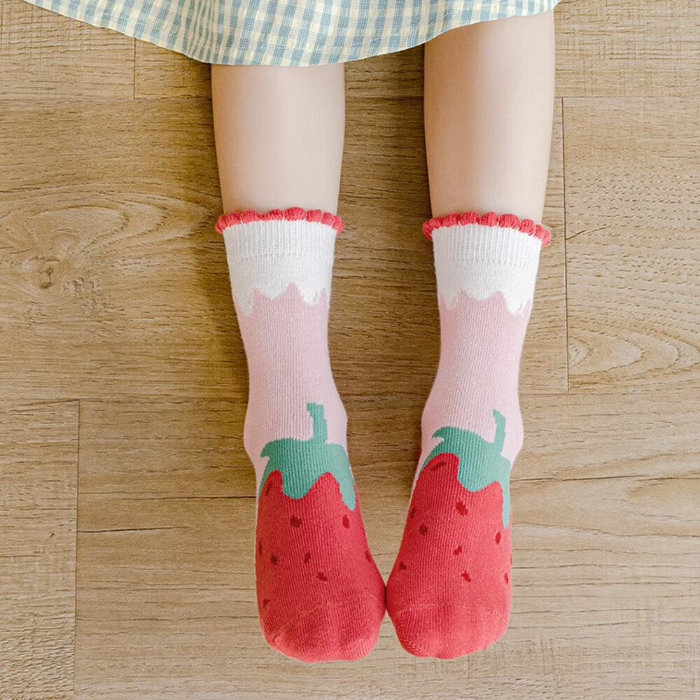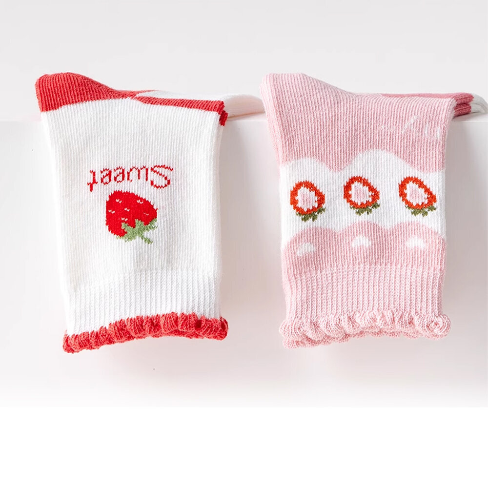 【腳ㄚ子】幼/兒童棉質中筒襪_草莓蛋糕_ilbG010