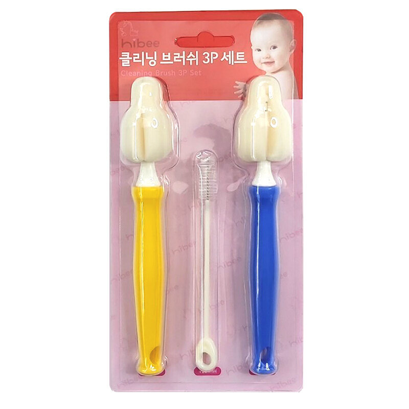 正韓 hibee 各類杯蓋/杯子/水壺縫隙/奶嘴/奶瓶 海綿萬用刷+吸管刷3入組 (海洋藍+星星黃) HFB007BY2 (兩套)