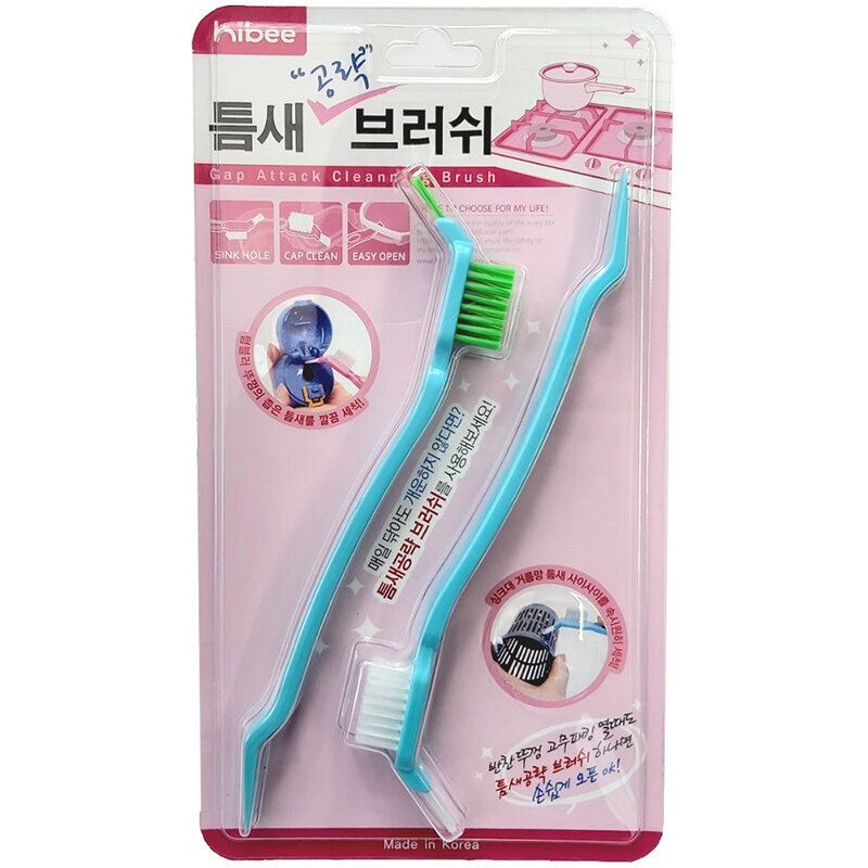 正韓 hibee 廚房保鮮盒邊緣/餐具/杯蓋/水槽邊緣 多功能縫隙刷2入(藍) HMB002S
