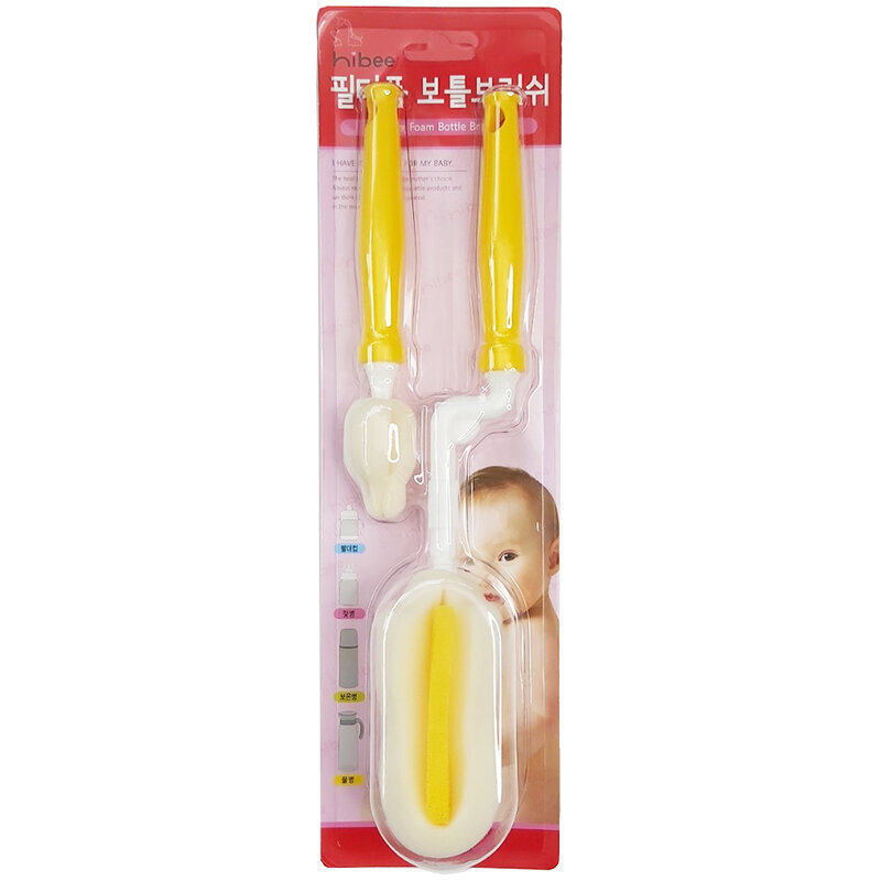正韓 hibee 極柔細各類水瓶/水壺/保溫瓶/奶瓶 萬用海綿刷(旋轉型)+海綿隙縫刷 (星星黃) HFB0102Y