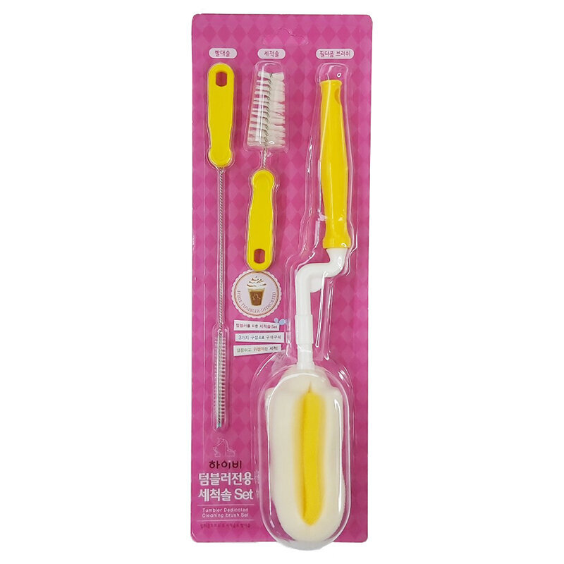 正韓 hibee 極柔細各類水瓶/水壺/奶瓶 廚房萬用海綿刷(旋轉型)+茶壺嘴刷+吸管刷(黃) HTB002Y