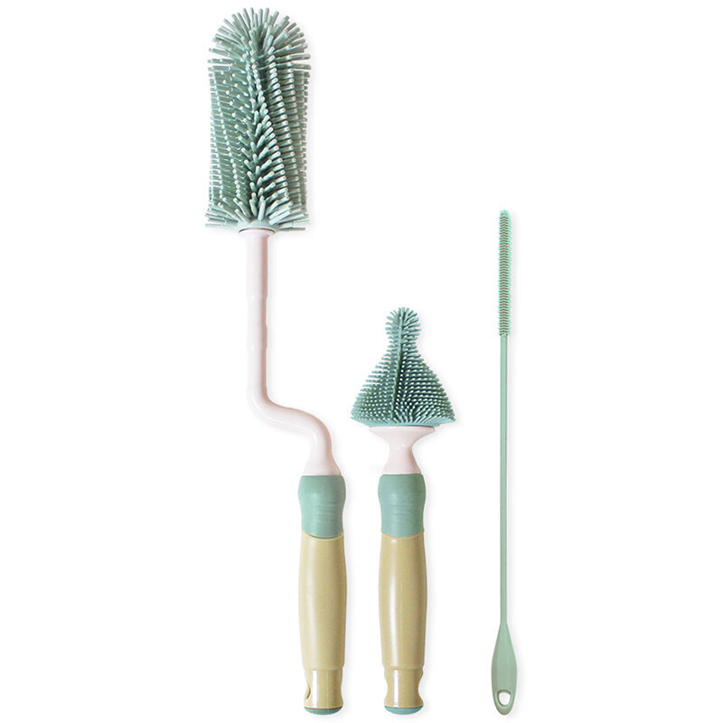 正韓 hibee 極柔細奶瓶/水瓶/水壺/杯蓋螺旋 矽膠萬用清潔刷(旋轉型)+隙縫刷+吸管刷(翡翠綠) HSB002M