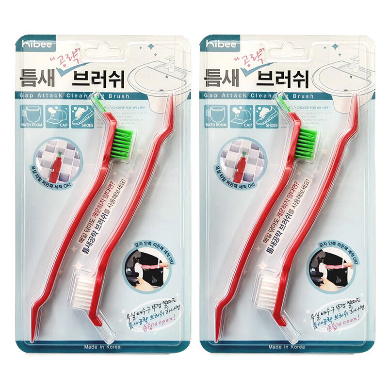 正韓 hibee 浴室洗手台/排水口/瓷磚隙縫 多功能縫隙刷/清潔刷2入(紅) HMB001R2(兩套四隻)