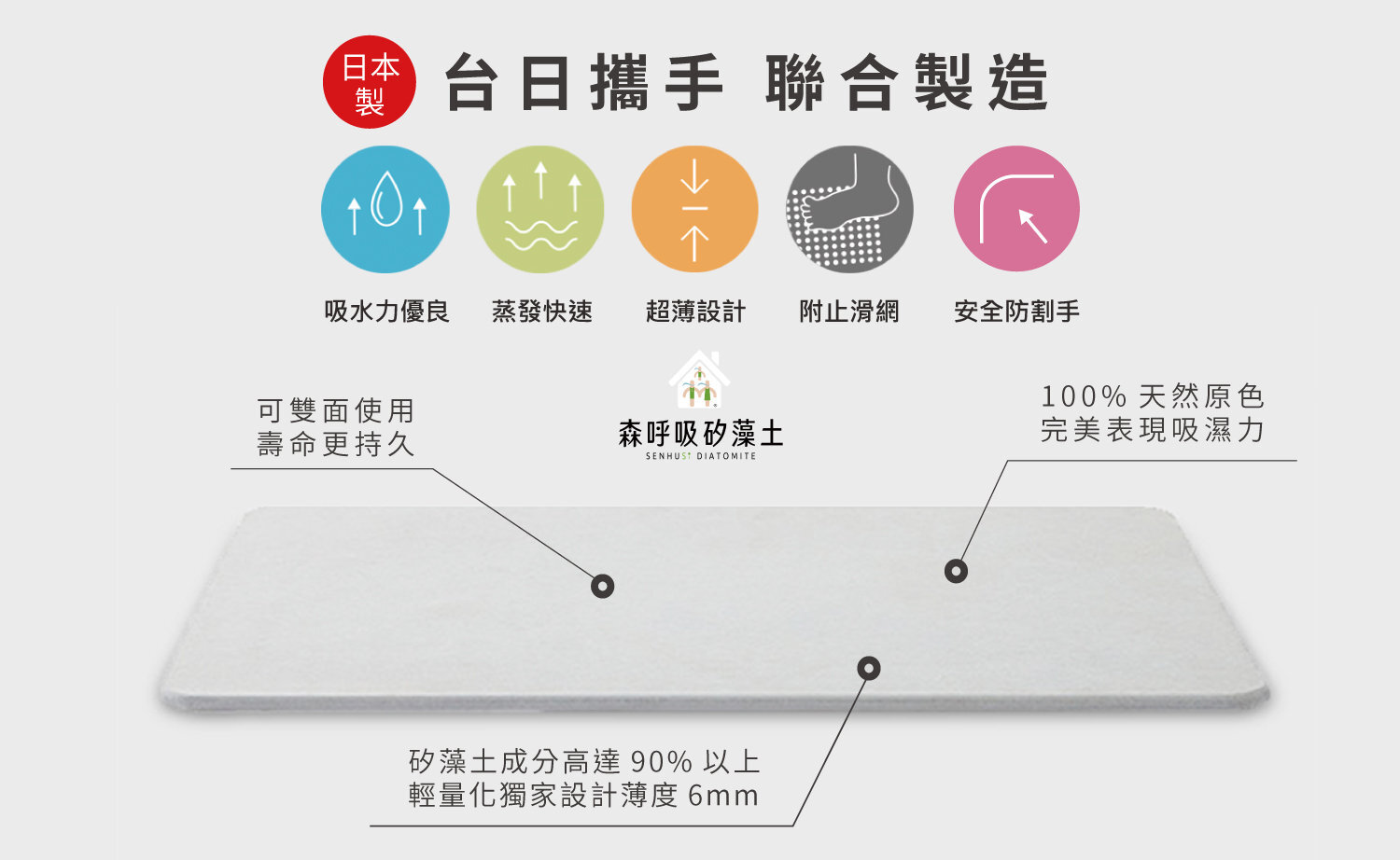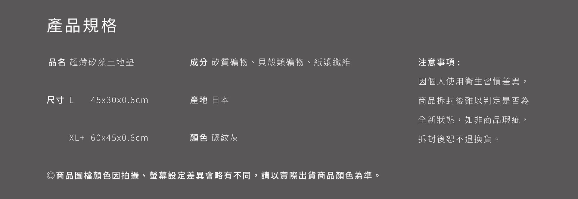 【森呼吸矽藻土】日本製超薄矽藻土吸水墊(XL+)-45*60 -1入組-礦紋灰