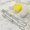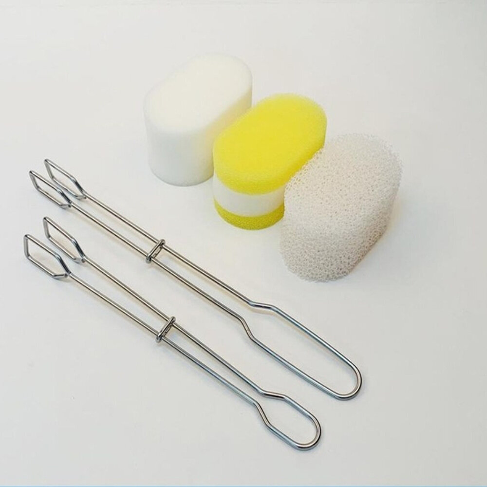 * 包含兩種尺寸的不鏽鋼手柄和三種不同功能的清潔海綿
