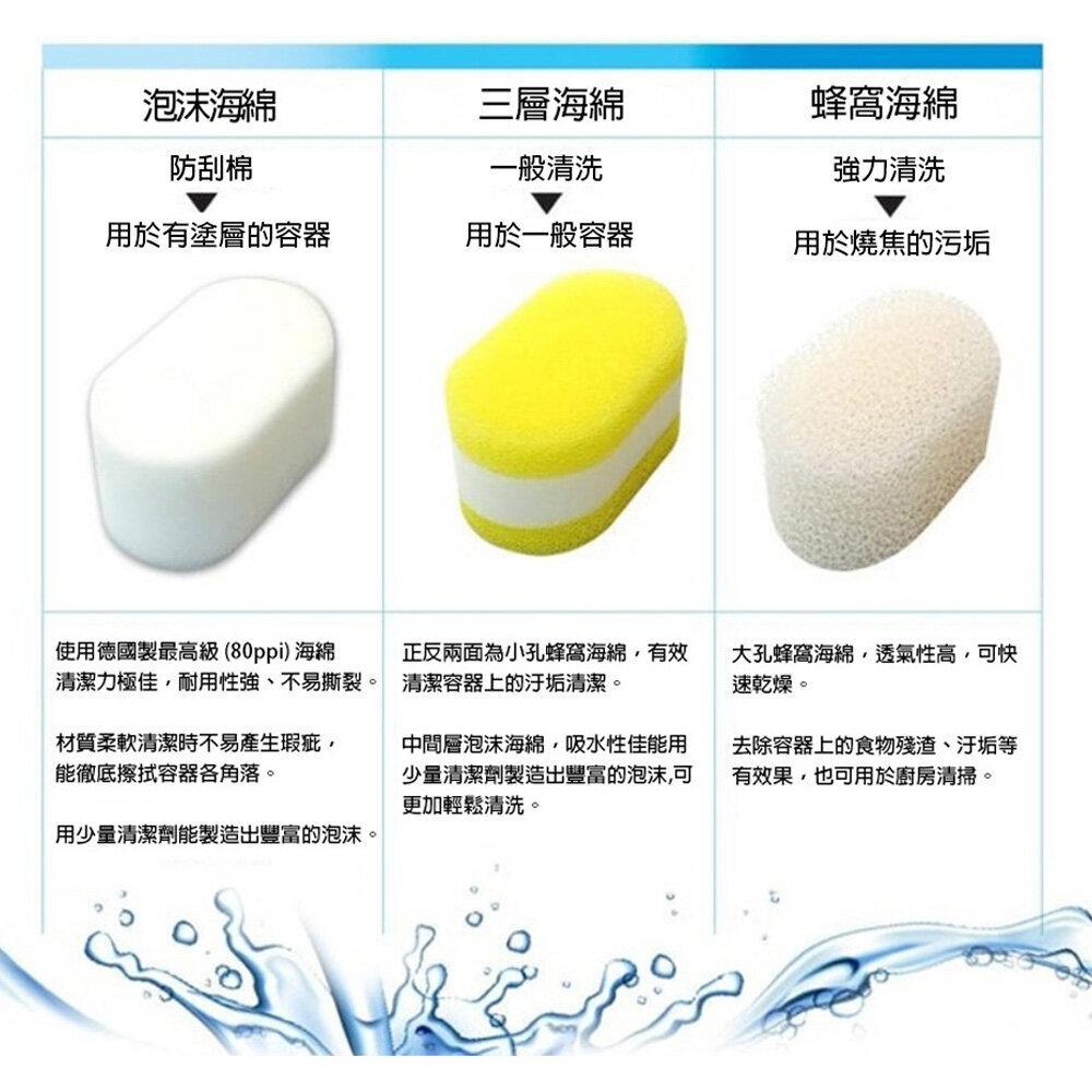 * 使用德國製最高級 (80ppi) 海綿,高密度不易撕裂,能產生豐富泡沫有利清潔