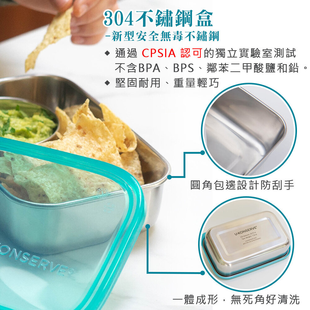 美國優康 U-Konserve 通過 LFGB 食品安全等級認證 / CPSIA 檢驗不鏽鋼便當盒 1350ml_島青色_UKR003