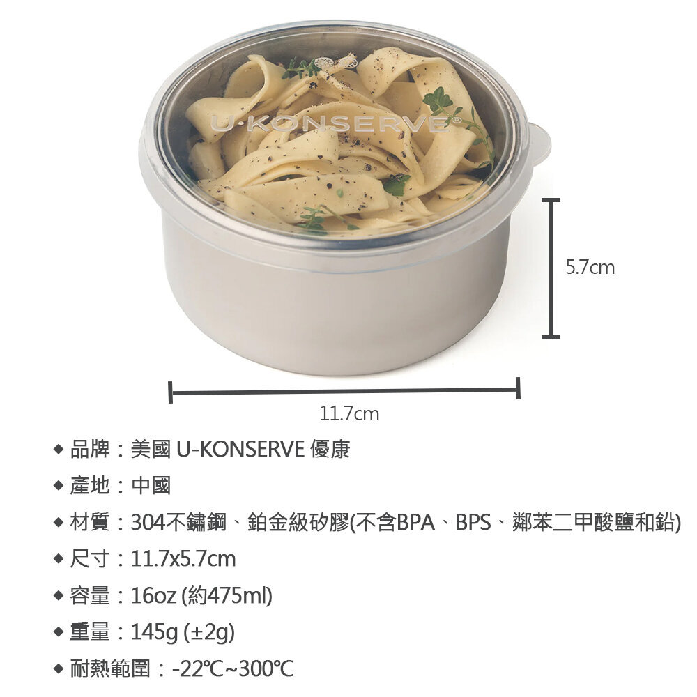 美國優康 U-Konserve 通過 LFGB 食品安全等級認證 / CPSIA 檢驗不鏽鋼保鮮盒/儲存盒兩件組 475ml_透明_UKC004-1