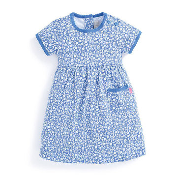 英國 JoJo Maman BeBe 超優質嬰幼兒/兒童100%純棉短袖洋裝_淺藍花卉(JJD2070C)