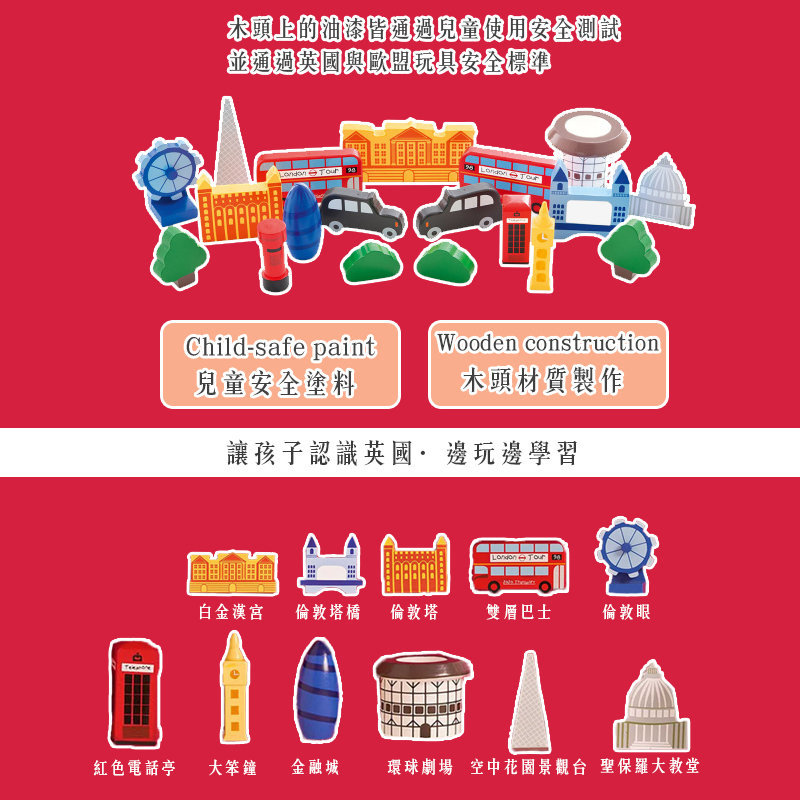 ※木頭上的油漆皆通過兒童使用安全測試,並通過英國與歐盟玩具安全標準
