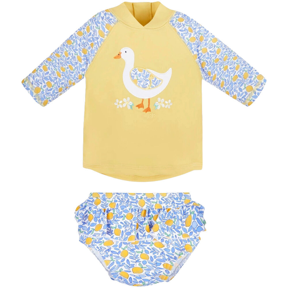 英國 JoJo Maman BeBe 嬰幼兒/兒童兩件式防曬泳裝_夏日檸檬鴨_JJH9580