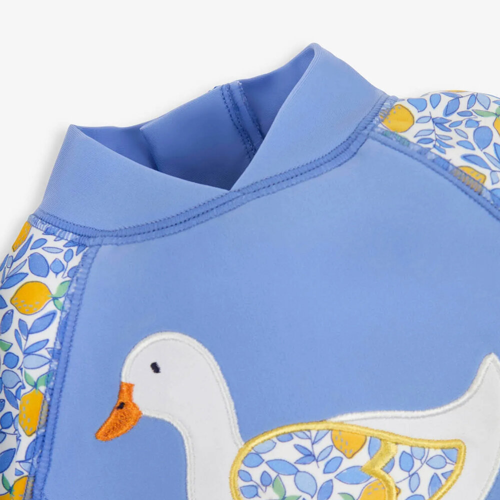 連身式能避免海水將衣服掀起,遮住寶寶的臉