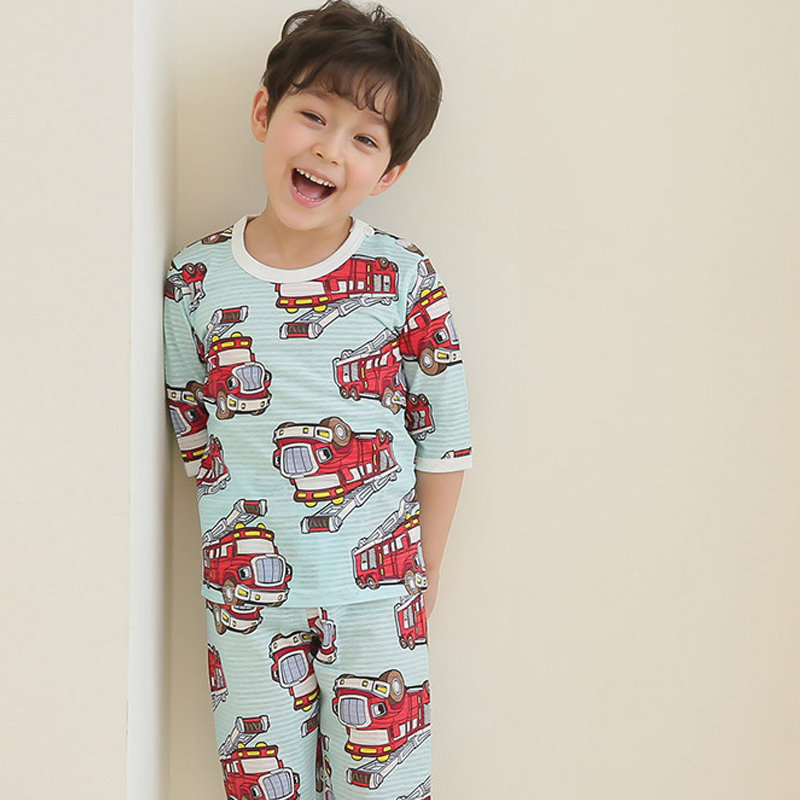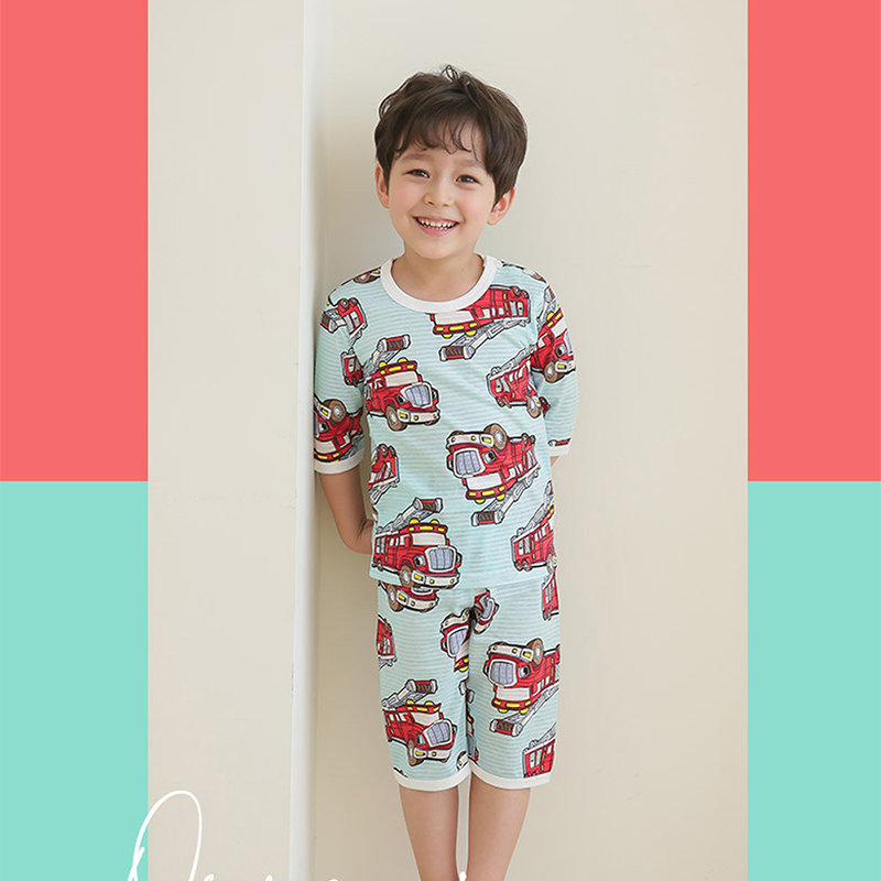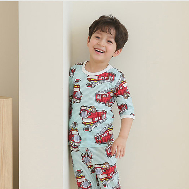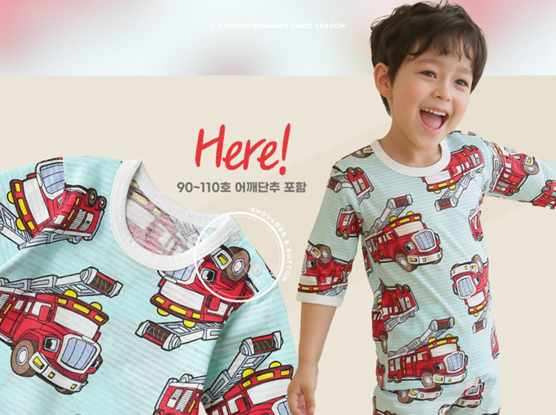 正韓 Puco 超優質嬰幼兒/兒童七分袖100% 有機純棉家居服/睡衣_打火英雄_PC21-002