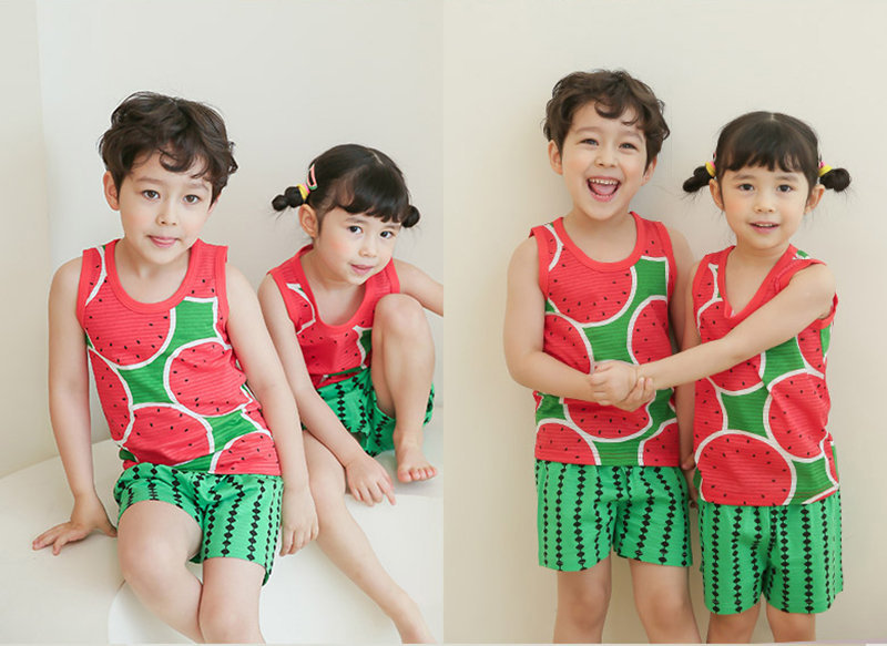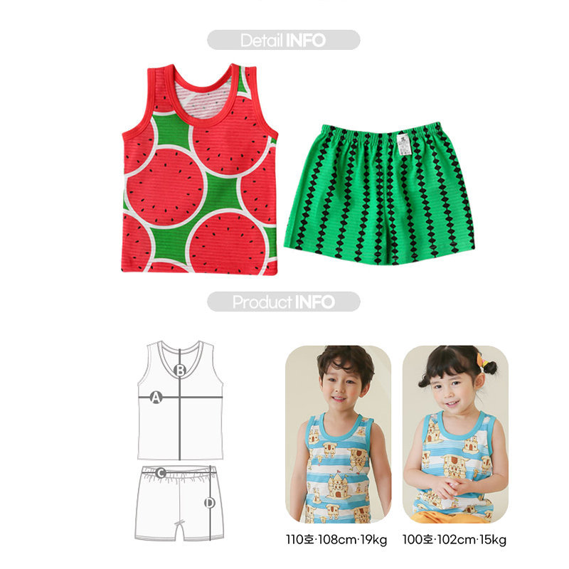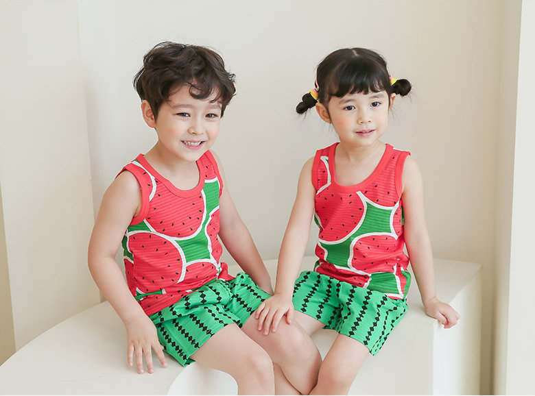 正韓 Puco 超優質嬰幼兒/兒童無袖100% 有機棉家居服/睡衣_冰涼西瓜_PCS21-011