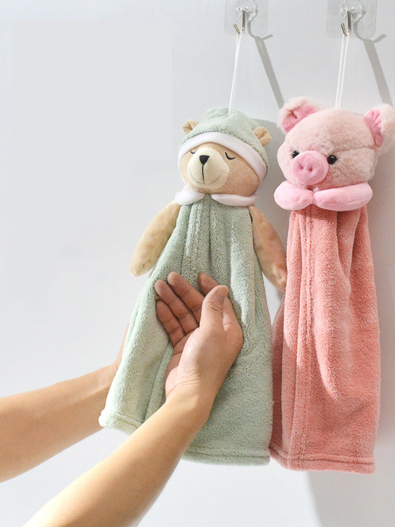 多功能可愛動物珊瑚絨擦手巾/安撫巾_可愛豬豬_甜美粉_HT-015
