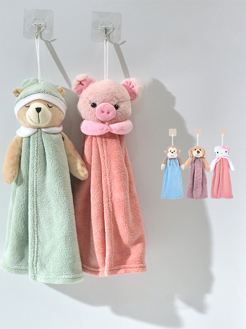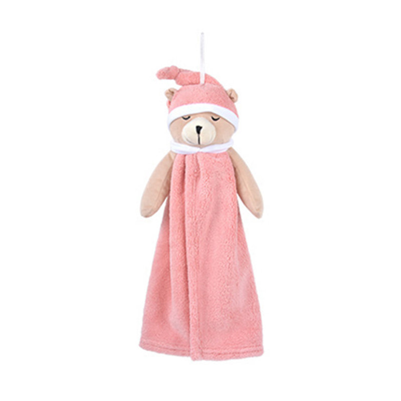 多功能可愛動物珊瑚絨擦手巾/安撫巾_微笑熊_甜美粉_HT-011