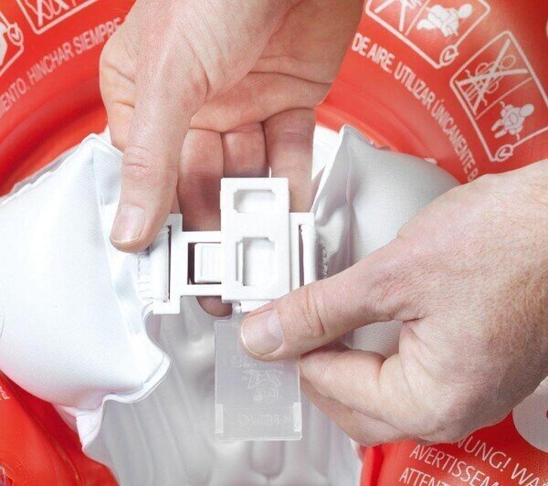 並擁有五個充氣室、實用的環扣夾與充氣式肩帶確保泳具快速安全合身。