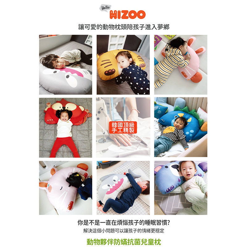 [正韓Hello HiZoo] 純手工製動物夥伴防蟎抗菌兒童枕/透氣枕/護脊/護頸枕(大款)害羞龍-HH018