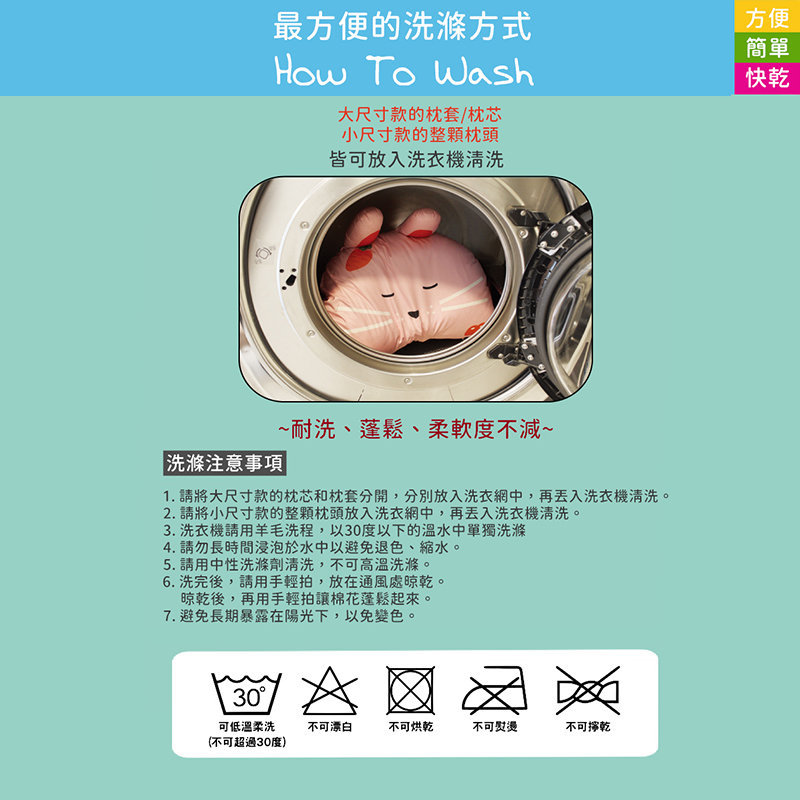 ※ 枕芯填充物-100%超細纖維棉(聚酯纖維)