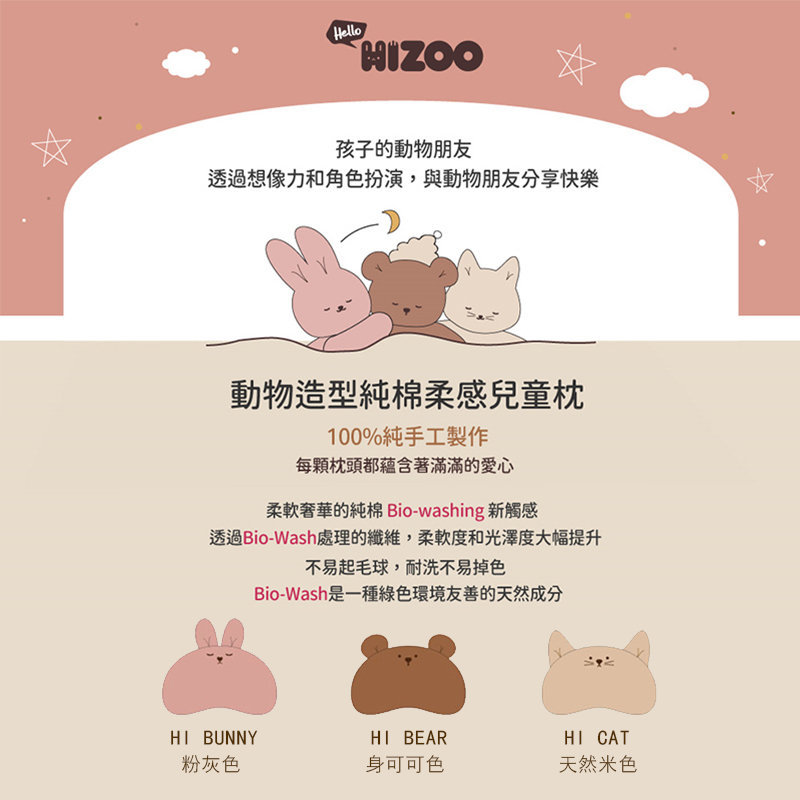 [正韓Hello HiZoo] 純手工製動物造型純棉柔感兒童枕/防蟎枕/透氣枕/健康枕-Hi Bunny 兔兔-HH031