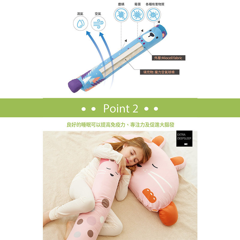 [正韓Hello HiZoo] 純手工製多功能防蟎抗菌兒童長條抱枕/靠枕/睡眠輔助枕/側睡抱枕(大款)守護熊-HH025