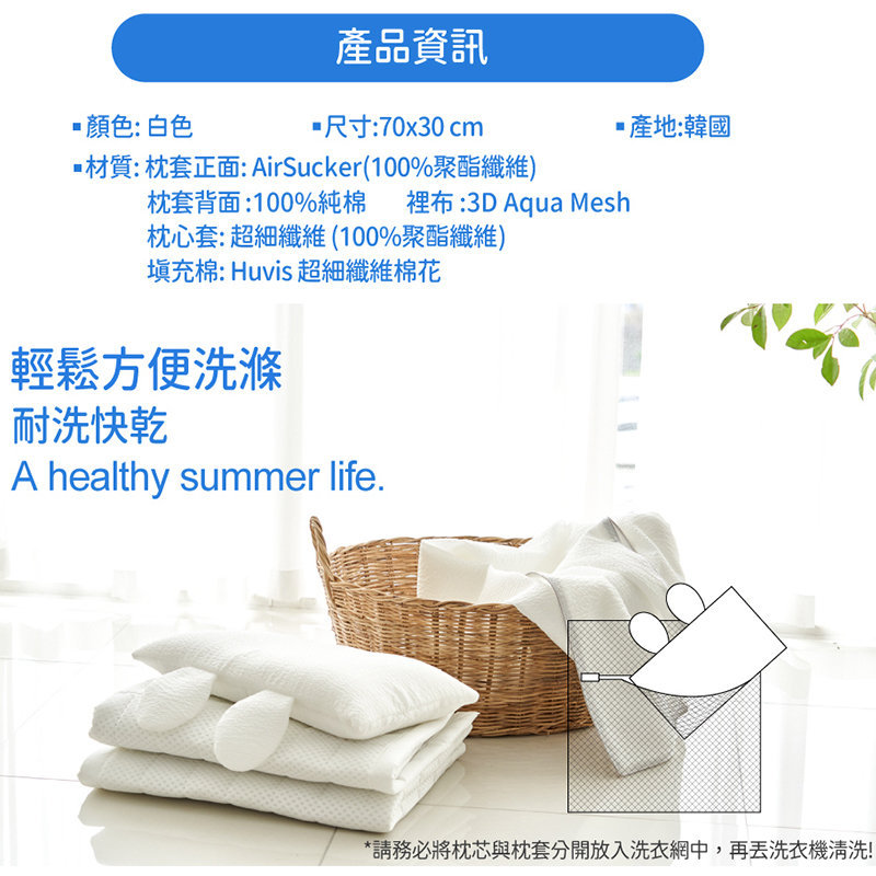 ※ 材質:枕套-一面:AirSucker(100%聚酯纖維) / 一面:100%棉