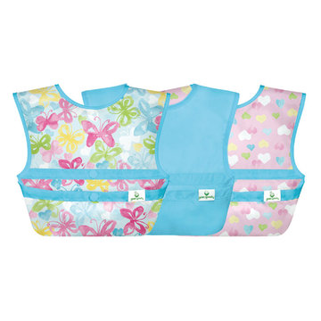 美國 green sprouts 小綠芽 魔鬼氈雙面防水/防食物掉落圍兜/【吃飯圍兜】三入組_愛心蝴蝶_GS101247-AW