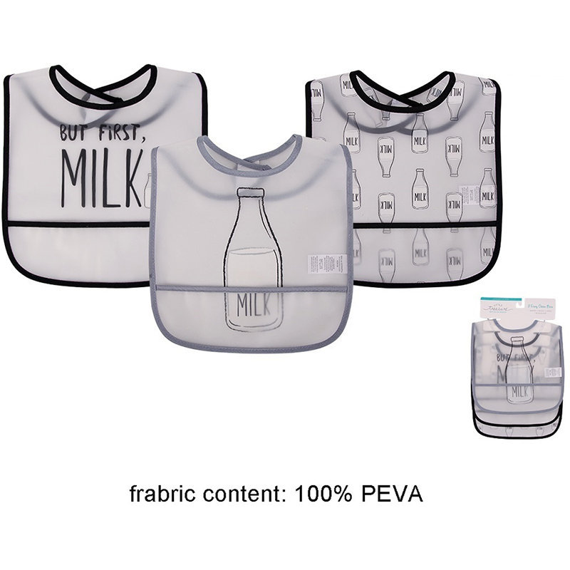 初期小怪獸接觸到奶粉以外的食物就是「副食品時期」這時候多數都是蔬菜泥、水果泥等輕食,這個時候還是處於媽咪們手動餵小怪獸進食,也因為食物多數是泥狀的關係所以圍兜還是選擇棉質圍兜,但要 "加大遮蔽面積" ,因為小怪獸吃飯的時候喜歡動來動去,容易沾滿全身。
