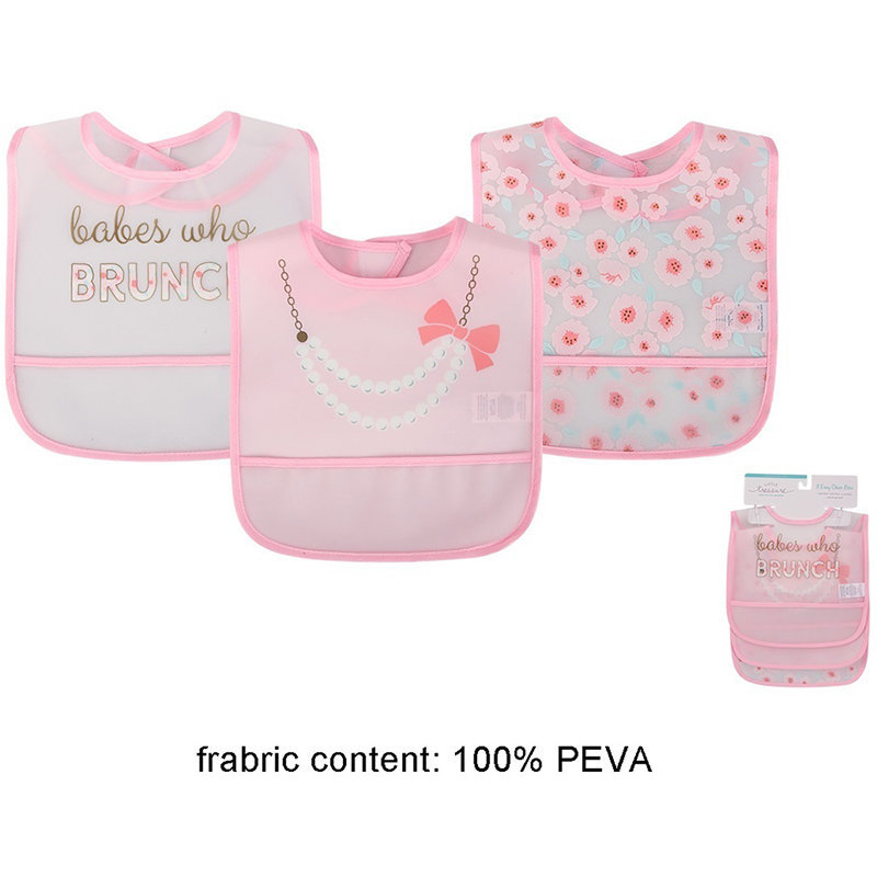 美國 luvable friends 甜蜜寶貝 嬰幼兒雙面防水圍兜3入組_項鍊粉蝴蝶 (LF75563)